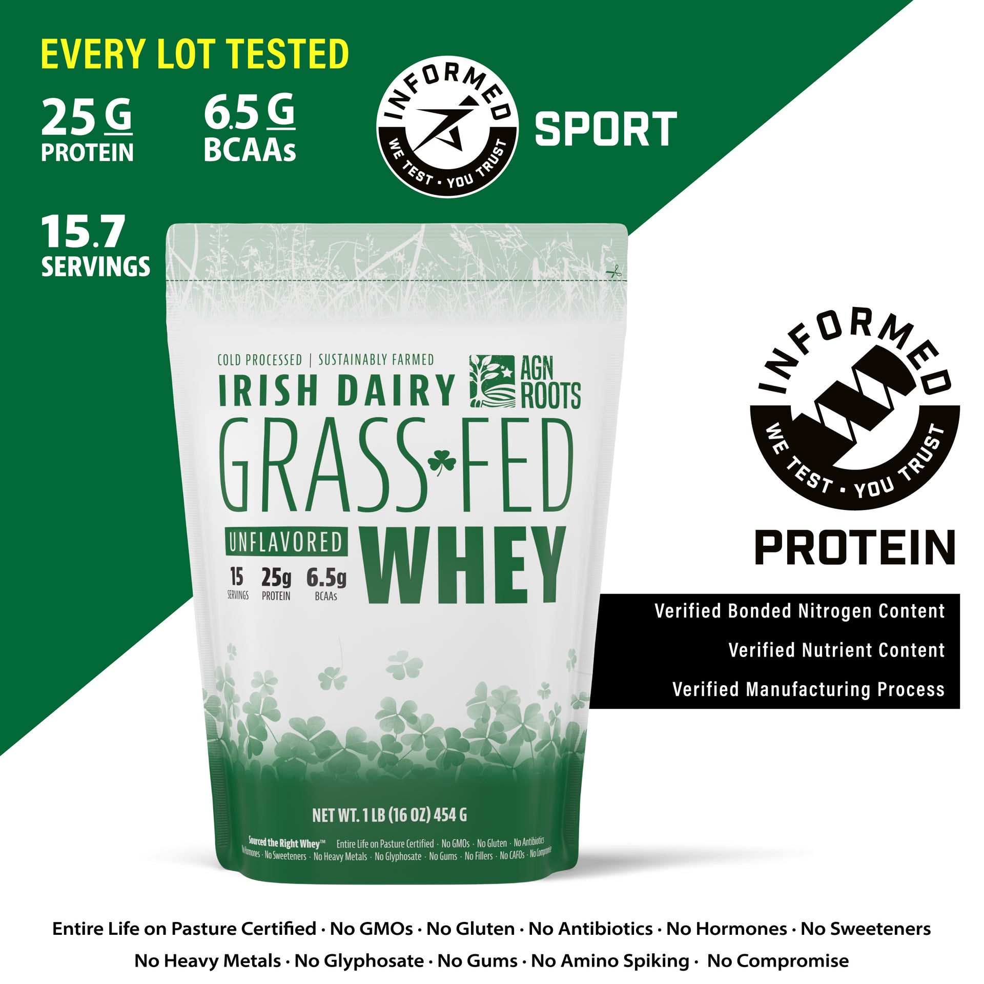 AGN Roots naturally contains the highest concentration of naturally occurring nitrogen-based macronutrients and branched-chain amino acids endemic to truly grass-fed dairy operations. Our certification with Informed-Protein assures customers that we steer clear of the ever-growing "Amino Spiking" phenomena dietary supplement brands undertake to bolster and mask low-quality milk nutrition attributes.